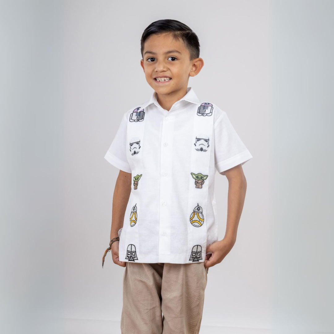 Hermosa Guayabera Blanca con temática en bordado de punto de cruz